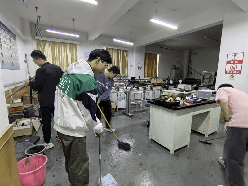 劳动过程中,同学们分工明确、协作默契。在工作室,大家手持抹布、扫帚等工具,认真擦拭办公桌、电脑、书架等设施,将散落的书籍、文件逐一归类摆放,对地面进行吸尘与拖拭,不放过墙角、桌底等卫生死角;在实验室,同学们严格遵循操作规范,将实验耗材按使用频率分类存放,对废旧试剂瓶、破损玻璃等废弃物进行分类打包,确保实验环境整洁安全。