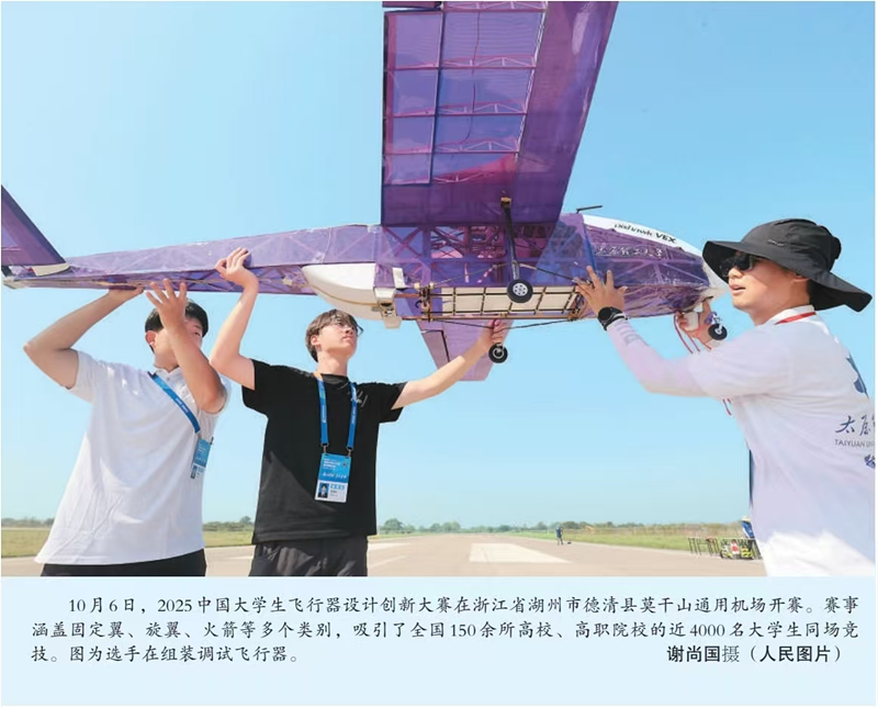 2025年10月10日《人民日报》(海外版)刊登我院航模协会同学自主设计飞机。